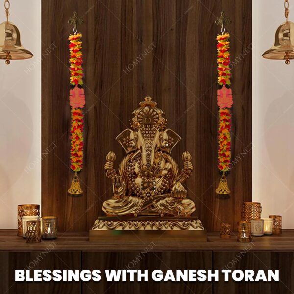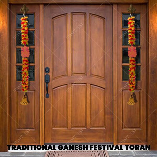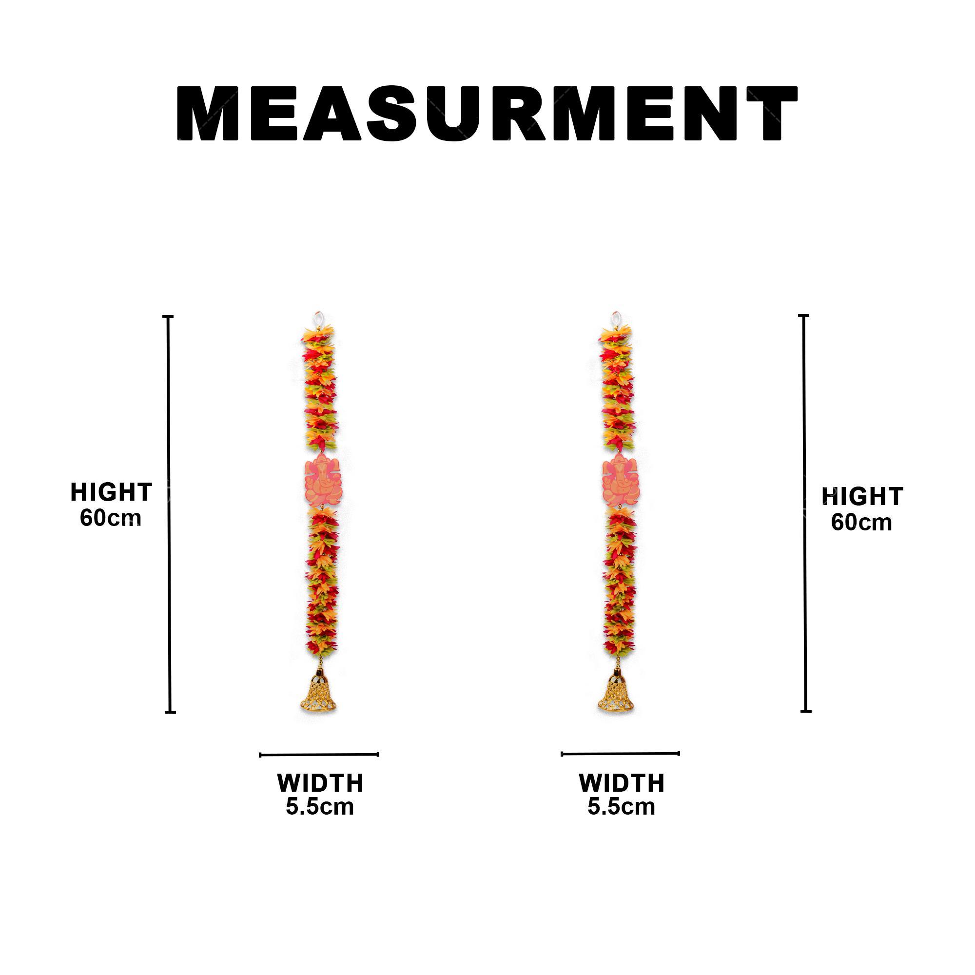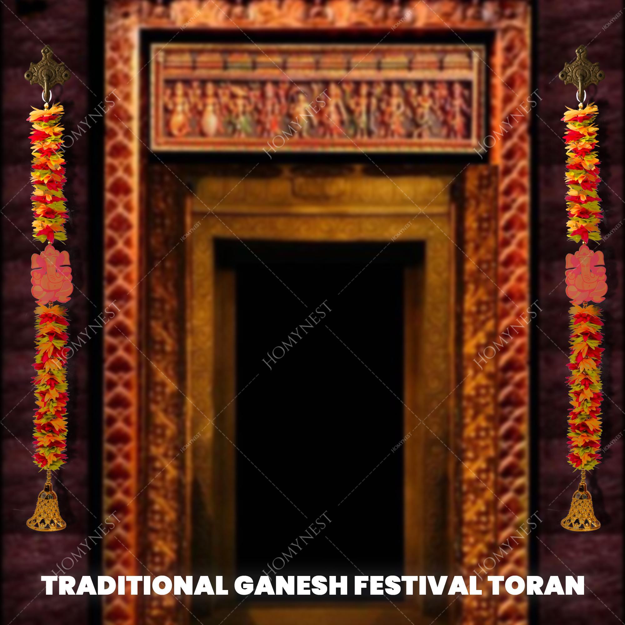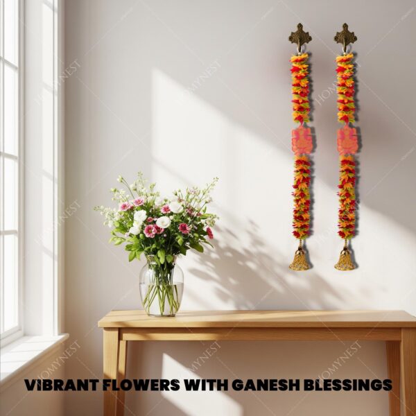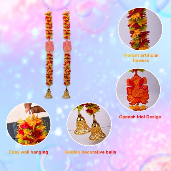Homynest Decorative Ganesh Ji Wall Hanging – Handmade Plastic, Green Yellow Red Leaf Chain, Crafted Ganpati Center, Golden Bell Accent, Festival Entryway, Temple Diwali Decor (Pack of 2)