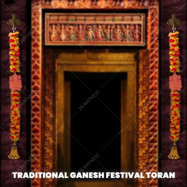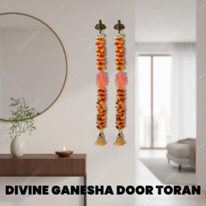 - Inside the Box – Ganesh Leaf Wall Hanging Decor: Includes one 60cm handmade plastic wall/door hanging with a vibrant mix of green, yellow, and red leaf garland, crafted Ganesh Ji centerpiece, and a large golden plastic bell. Premium accessory for home, mandir, pooja room, or festival entryway. Ganesh wall hanging, Diwali decor, leaf latkan, festival door accent ganesh wal hang, latkhan, dewali