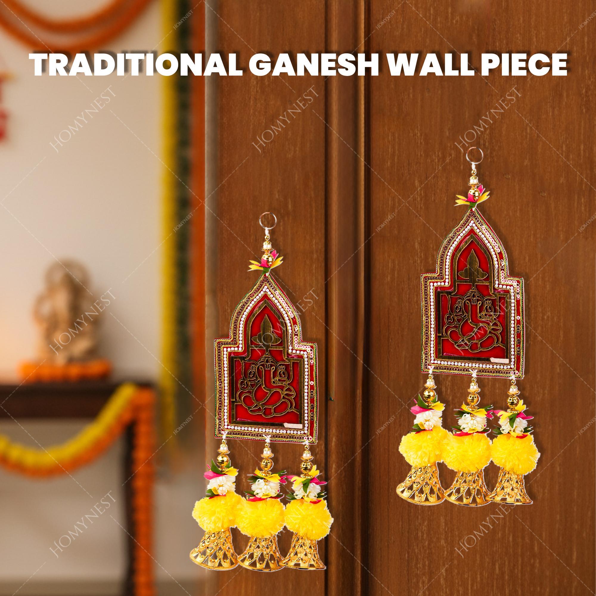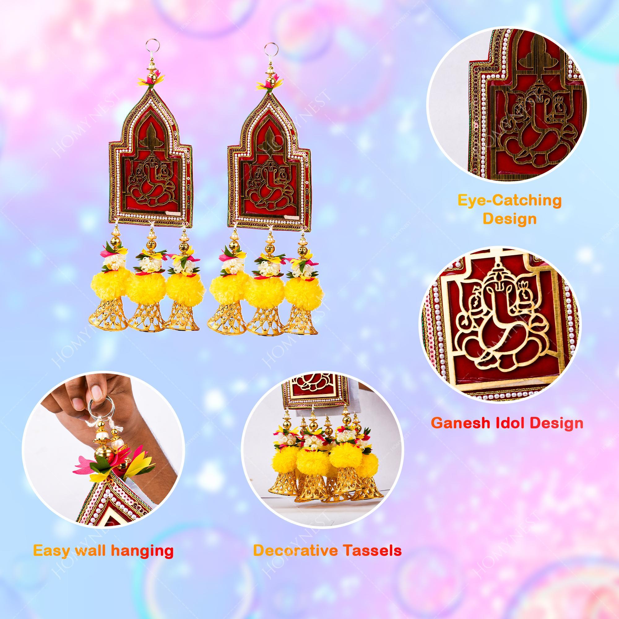 Homynest Ganesh Wall Hanging Set of 2 – Handmade Multicolor Cloth Festival Decor with Pearl Beads Golden - homynest.in www.homynest.in