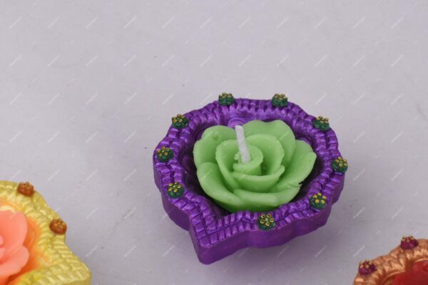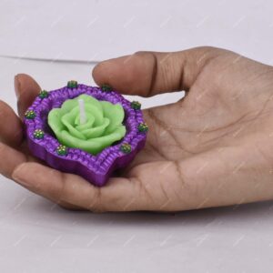1. Get 12 Homynest handmade clay diyas (5.5×5.5×2.7cm, 49g each) with vibrant wax rose flower candles in assorted colors (pink, green, orange, yellow, purple). Each diya features classic nakashiya work and festive embellished beads-perfect for Diwali, puja, home décor, and gifting. handmade clay diya, rose flower diya, festival diya pack, decorative diya, multicolor diya, pooja diya