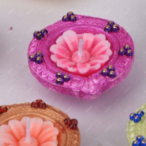 Homynest Handmade Clay Wax Diya Pack of 6 Multicolor Decorative Flower Diya with Golden Embellishments, Long Burning Floating Candle for Diwali Puja, Traditional Festival Home Décor, Gift, Rangoli