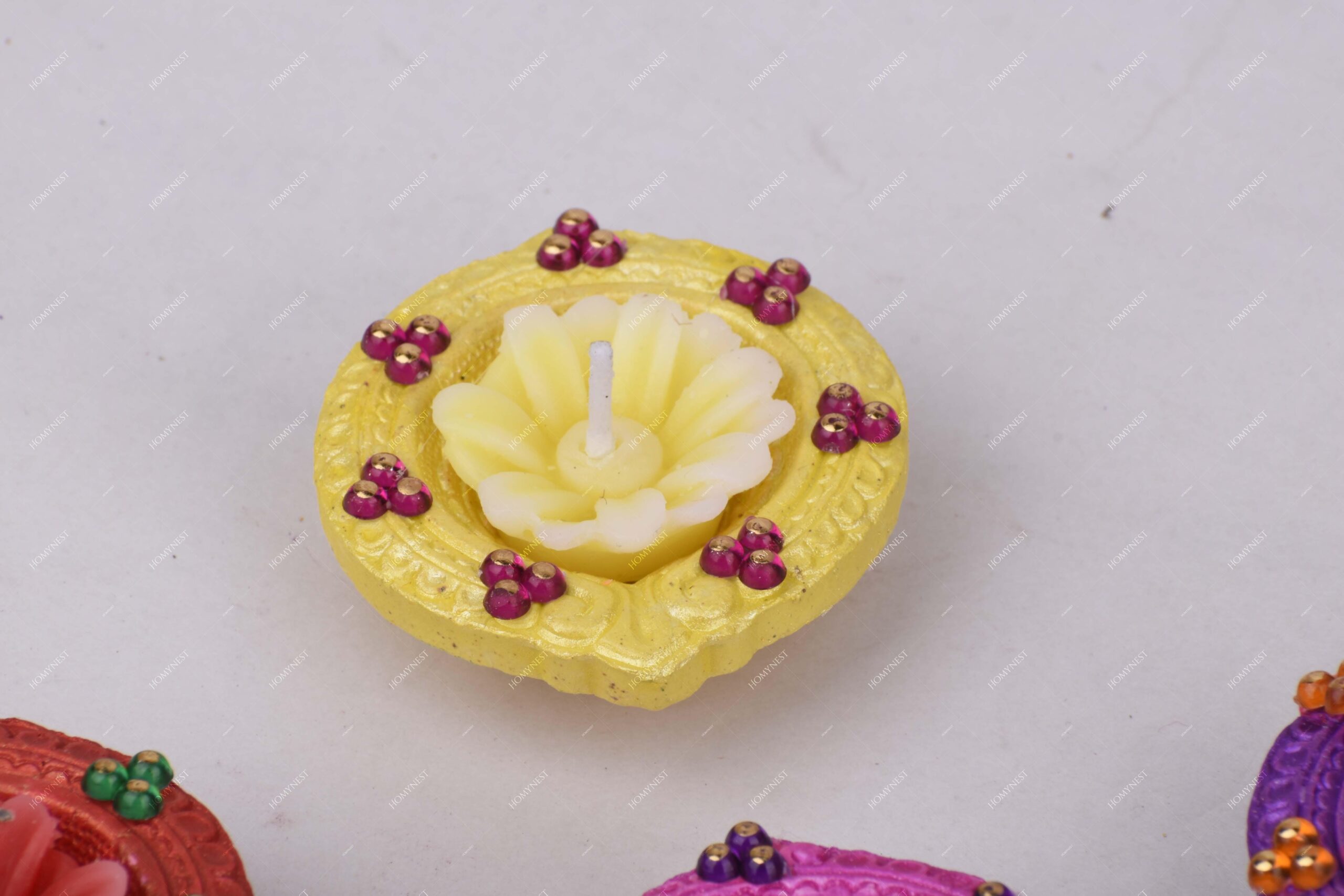 Homynest Handmade Clay Wax Diya Pack of 6 Multicolor Decorative Flower Diya with Golden Embellishments - homynest.in www.homynest.in