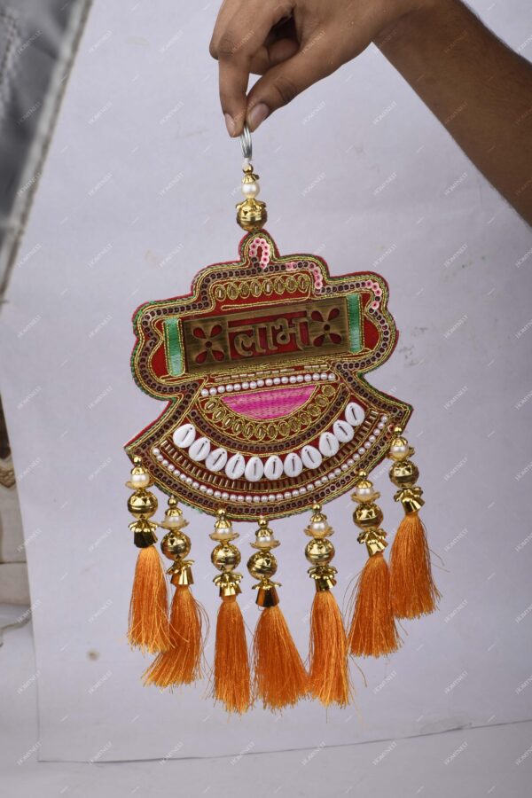 Homynest Shubh Labh Wall Hanging Decor Pair of 1 – Handmade Multicolor Cloth, White Cowrie Shell, Golden Tassel, Traditional Festival Door Art for Diwali, Entrance, Housewarming