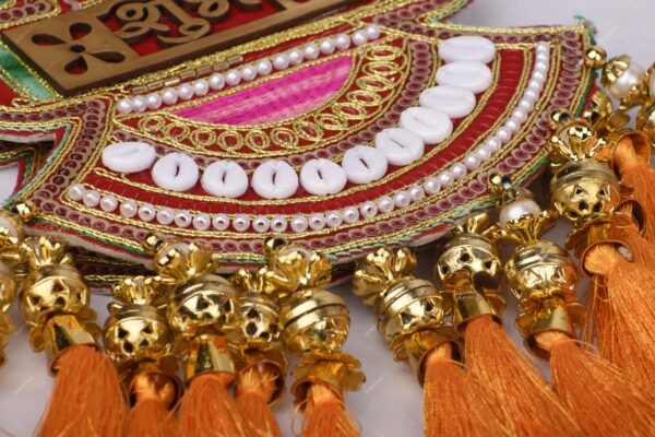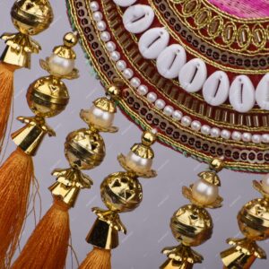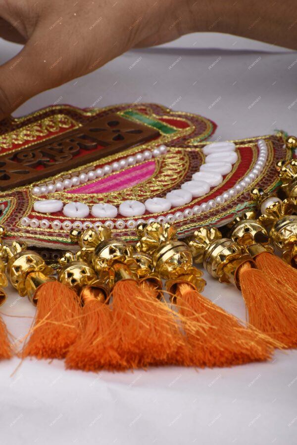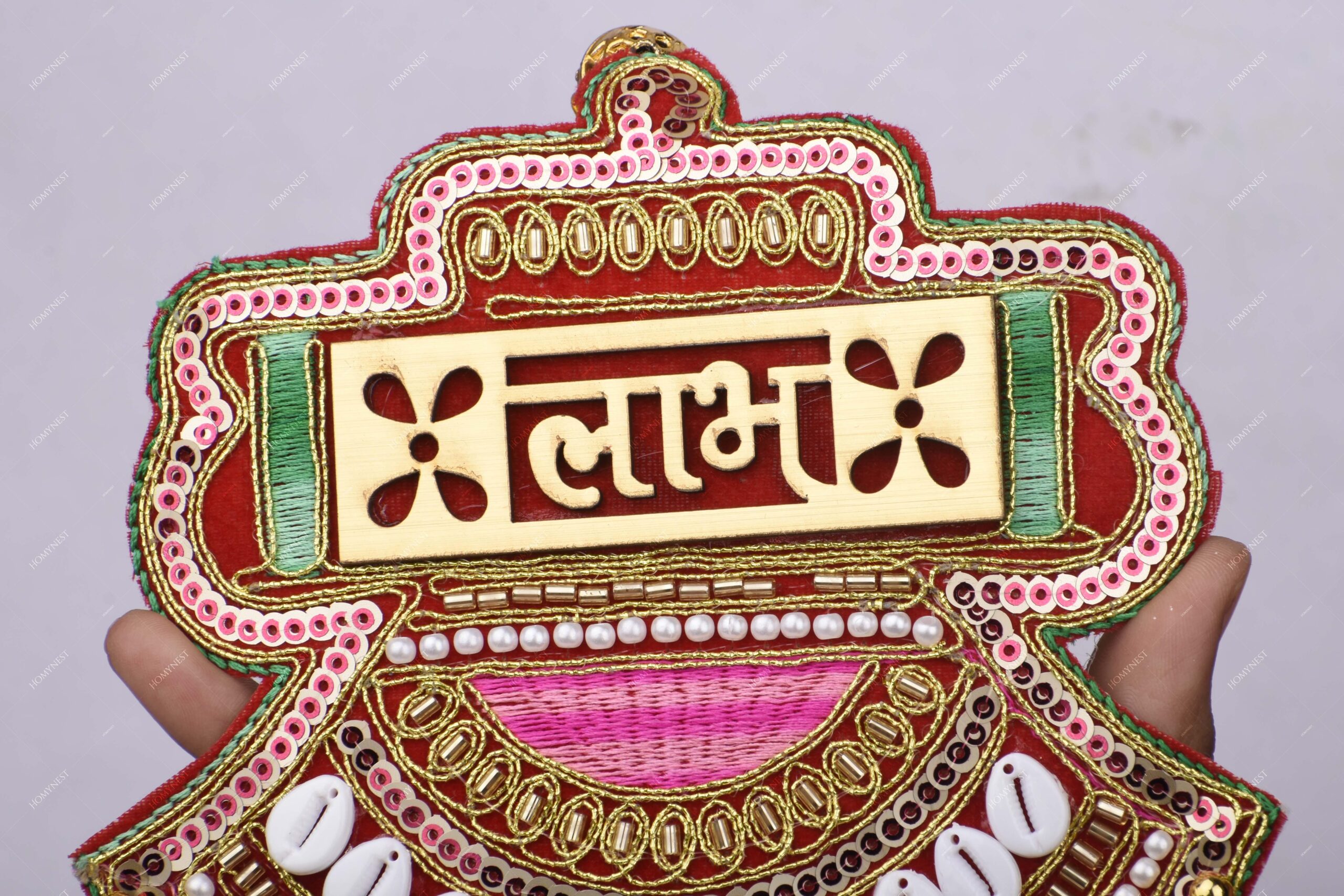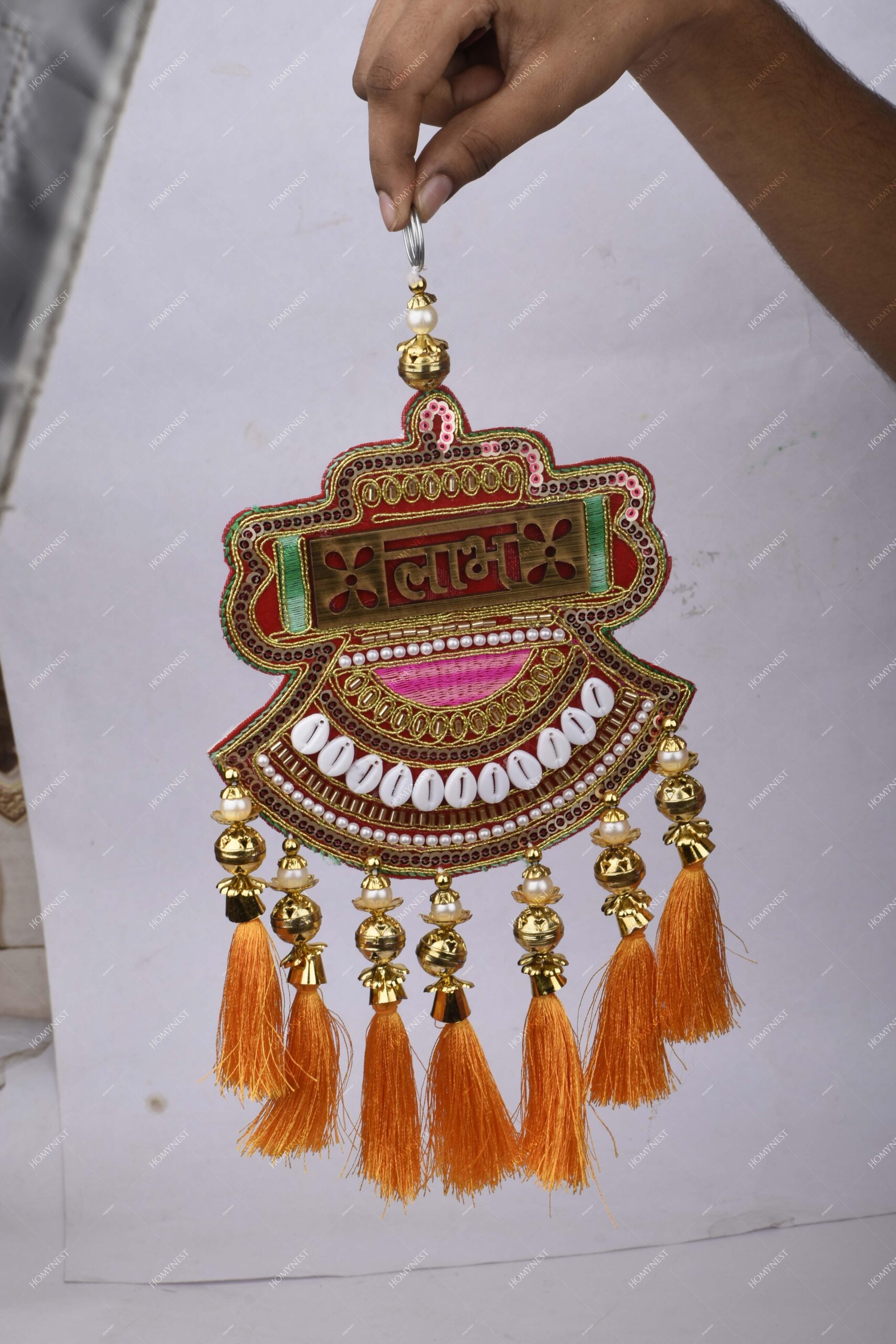 Homynest Shubh Labh Wall Hanging Decor Pair of 1 – Handmade Multicolor Cloth White Cowrie Shell Golden