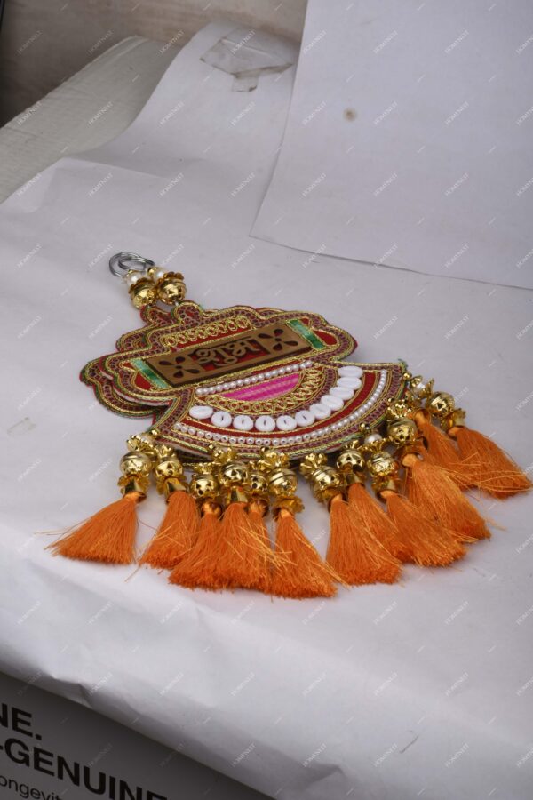 1. Inside the Box – Shubh Labh Handmade Decorative Set: Includes 1 Pair rectangular Shubh Labh wall hangings, crafted in vibrant red, green, orange, and white with a golden “Shubh” plaque, white cowrie shell accents, pearl beads, orange-gold tassels, and detailed threadwork. Light yet durable (40g each), perfect for festival and spiritual décor at home, pooja room shubh labh, festival wall hanging, door decor, diwali home decor shub lab, shubh laabh, wall hangin