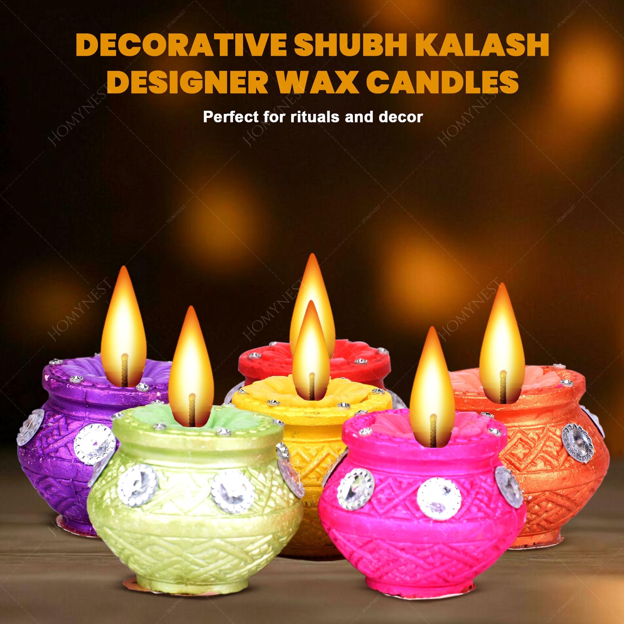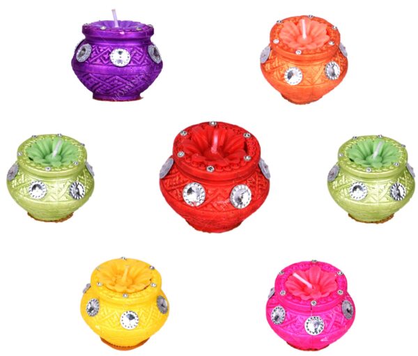 - Complete Set of 7 Handmade Matka/Kalash Diyas :- Includes 7 individually handcrafted clay diyas, each filled with vibrant wax and hand-painted in assorted festive colors, perfect for Diwali, Navratri, and other religious celebrations. Matka/Kalash clay diya, pack of 6 diya, festival diya