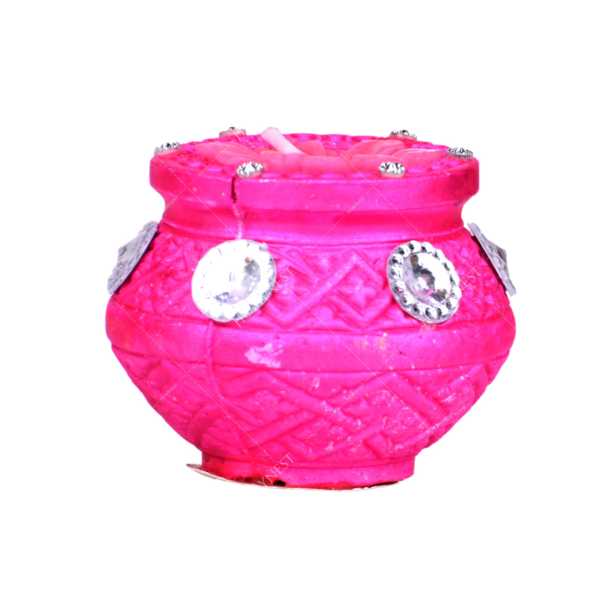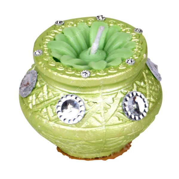 - Ready-to-Use Wax Tealight Candles :- Equipped with unscented, smokeless wax tealights – simply light the wick to enjoy a clean, long-lasting glow without the need for oil or ghee. Matka/Kalash wax tealight diya, smokeless candle, ready to light diya